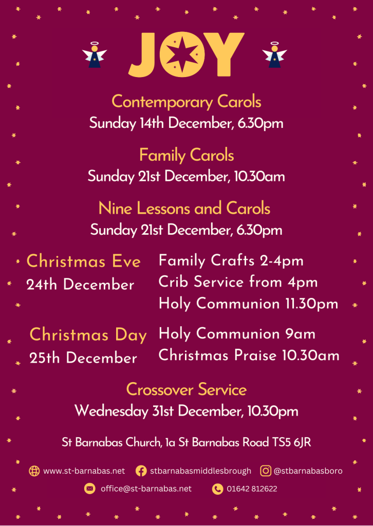 Details of our Christmas services for this year can be found below, visit our Christmas page for more details. Everyone is so welcome to join us!